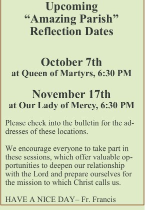 The “Amazing Parish” Reflection series was presented on Monday September 22nd at Saint Augustine. Other presentation from Amazing Host of “Amazing Parish series can be seen by going to to.