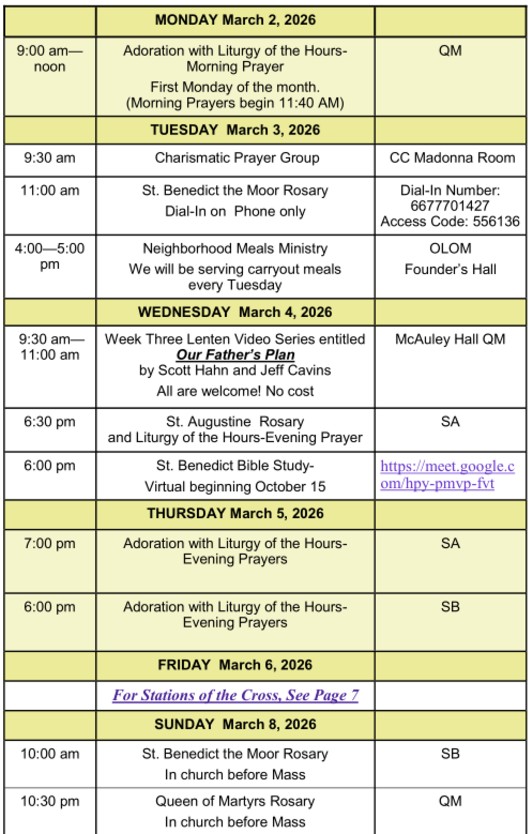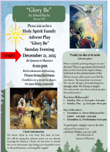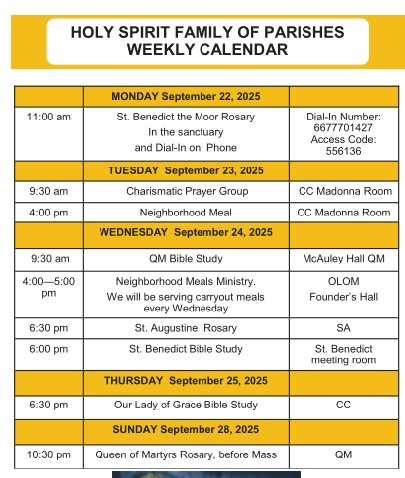 RCIA – Anyone interested in learning more about the Catholic Faith is asked to please call the parish office (937-268-6697).