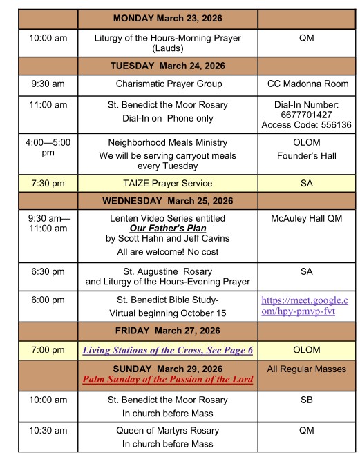 If you would like to be a part of the St. Augustine Prayer Chain, please contact Marie Klotz at saintapraysingtown@gmail.com